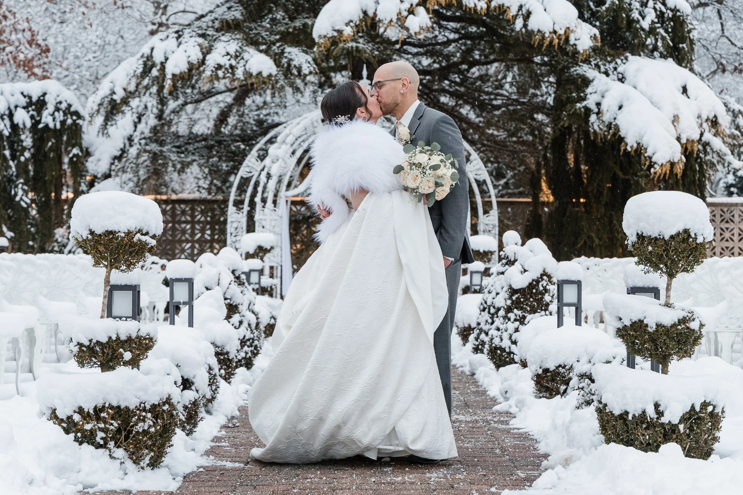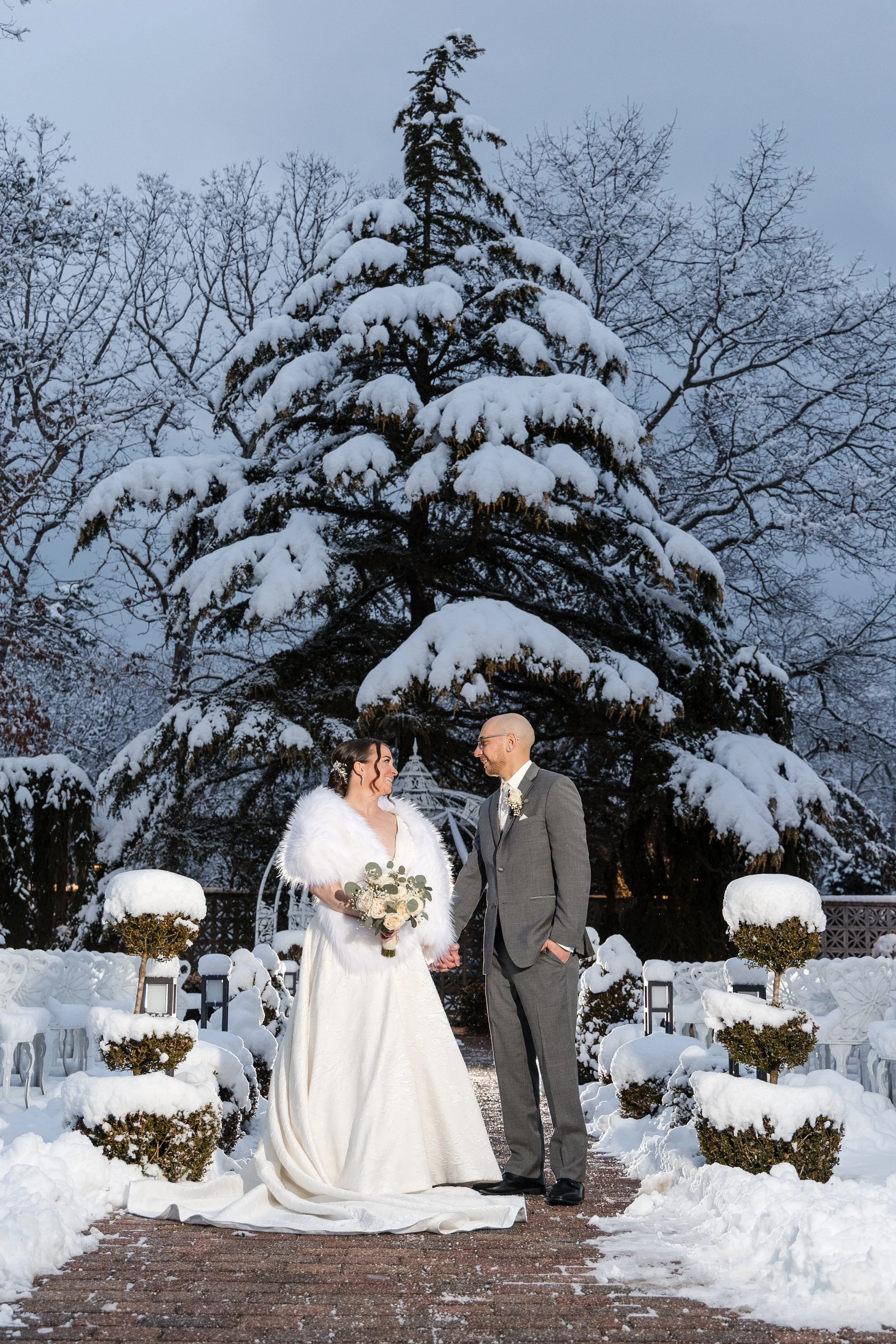 “Now our wedding day comes. I barely slept that night and when I woke up, we had a ton of snow on the ground and I can remember getting texts from my soon to be husband saying “BABE, IT’S SNOWING!! WE’RE GOING TO HAVE A WHITE WEDDING!!. He told me how excited he was to see me and how he couldn’t wait to marry me. The snow was so absolutely magical and I truly believe that this was another sign that my mom was here with me. It was truly the best day of our lives and we had the time of our lives, which you can clearly see in the pictures!”